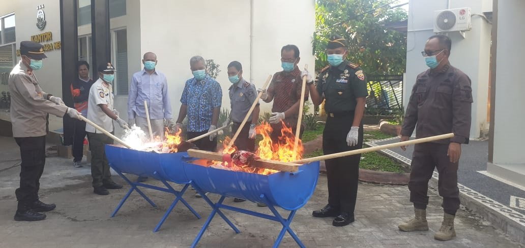 Sumbawa Besar (Suara NTB) – Kejaksaan Negeri Sumbawa, memusnakan barang bukti (BB) sejumlah kasus kejahatan yang disita dari para pelaku tindak pidana dengan total 45 perkara yang didominasi kasus narkotika.