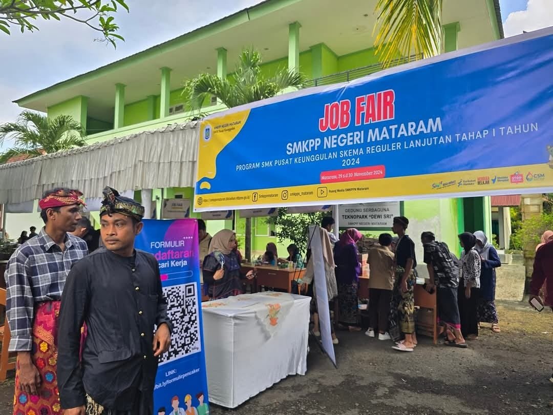 Bursa kerja diselenggarakan di SMK PP Negeri Mataram di Labuapi, Sabtu, 30 November 2024. Terdapat 19 perusahaan mitra SMKPP Negeri Mataram yang ambil bagian pada kegiatan ini diantaranya, CV. Seed Cool Bibit, Delicious Moik, UD. Azhari, PT. Afriliya mandiri International, BP3MI NTB, PT. Swakarya Insan Mandiri, PT. Permodalan Nasional Madani, LPK Fuji Academy, P4S Askot, PT Borwita Citra Prima, PT. Sampeang, P4S Kuntum, Bali Tosha Lombok Kochi, PT. Swakarya Insan Mandiri, PT. Borwita Citra Prima, LPKnDoryouku, PT. Djamin Harapan Abadi.