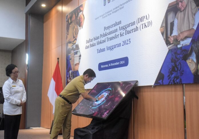 Mataram (Suara NTB) – Penjabat (Pj) Gubernur NTB didampingi Kepala Kanwil Ditjen Perbendaharaan Provinsi NTB menyerahkan Daftar Isian Pelaksanaan Anggaran (DIPA) Tahun 2025 dan Daftar Alokasi Transfer Ke Daerah (TKD) Tahun 2025 kepada para Kuasa Pengguna Anggaran (KPA) dan para Bupati/Walikota secara digital. Kegiatan tersebut dilaksanakan di Aula Kantor KPPN Mataram pada Senin, 16 Desember 2024.