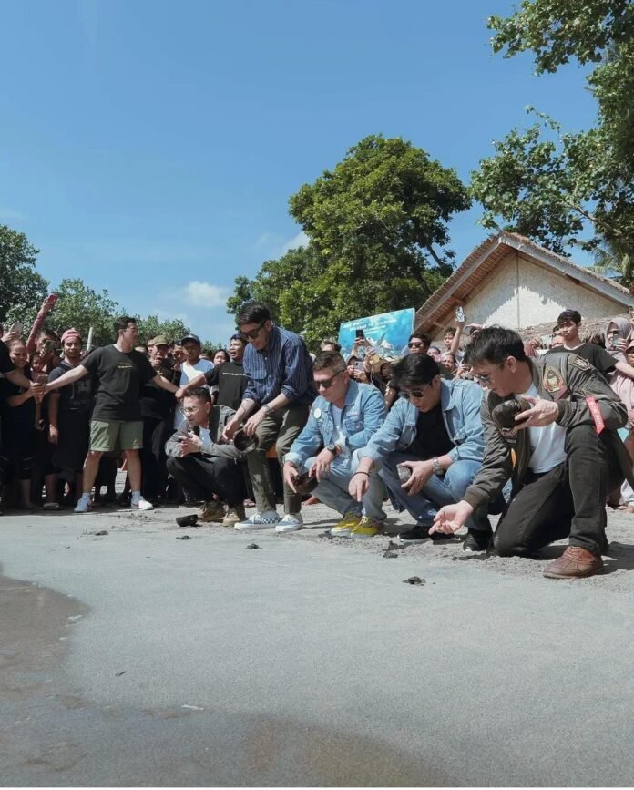 Tanjung (Suara NTB) – Sejumlah artis nasional yang tergabung dalam The Dudas Minus One, berkesempatan mengunjungi Kabupaten Lombok Utara (KLU), pada Sabtu, 28 Juni 2025. Raffi Ahmad, Ariel Noah, Parto, Desta dan Gading Marten, menyambangi Turtle Conservation Community (TCC) Nipah, di Desa Malaka, Kecamatan Pemenang.