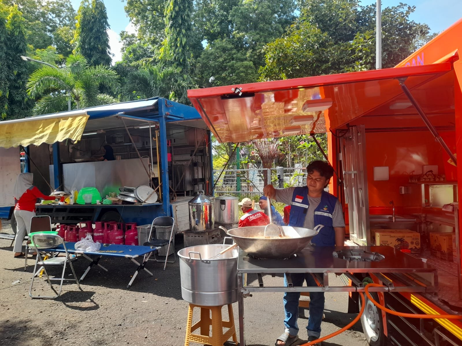 Untuk mendukung operasional dapur umum, Dinsos Kota Mataram mengerahkan sebanyak 40 personel dari Taruna Siaga Bencana (Tagana) dan jajarannya. Para personel tersebut dibagi dalam dua shift, yakni pagi dan sore, guna memastikan distribusi makanan berjalan lancar setiap hari.