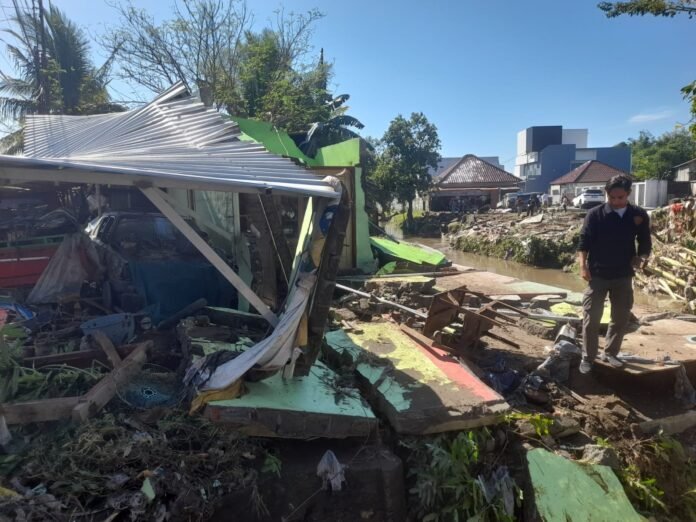 Selain curah hujan tinggi banjir diperparah oleh tumpukan sampah dan pohon tumbang yang menyumbat aliran sungai, terutama di bawah jembatan. Kondisi ini membuat air meluap ke pemukiman sekitar.