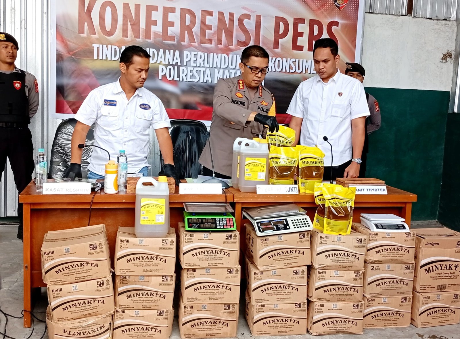 Mataram (Suara NTB) – Kepolisian Resor Kota (Polresta) Mataram menahan seorang produsen minyak goreng merek MinyaKita karena diduga memproduksi dan mengedarkan minyak dengan takaran tidak sesuai label kemasan. Sebanyak 592 kemasan disita dari rumah produksi di wilayah Sandubaya, Kota Mataram.
