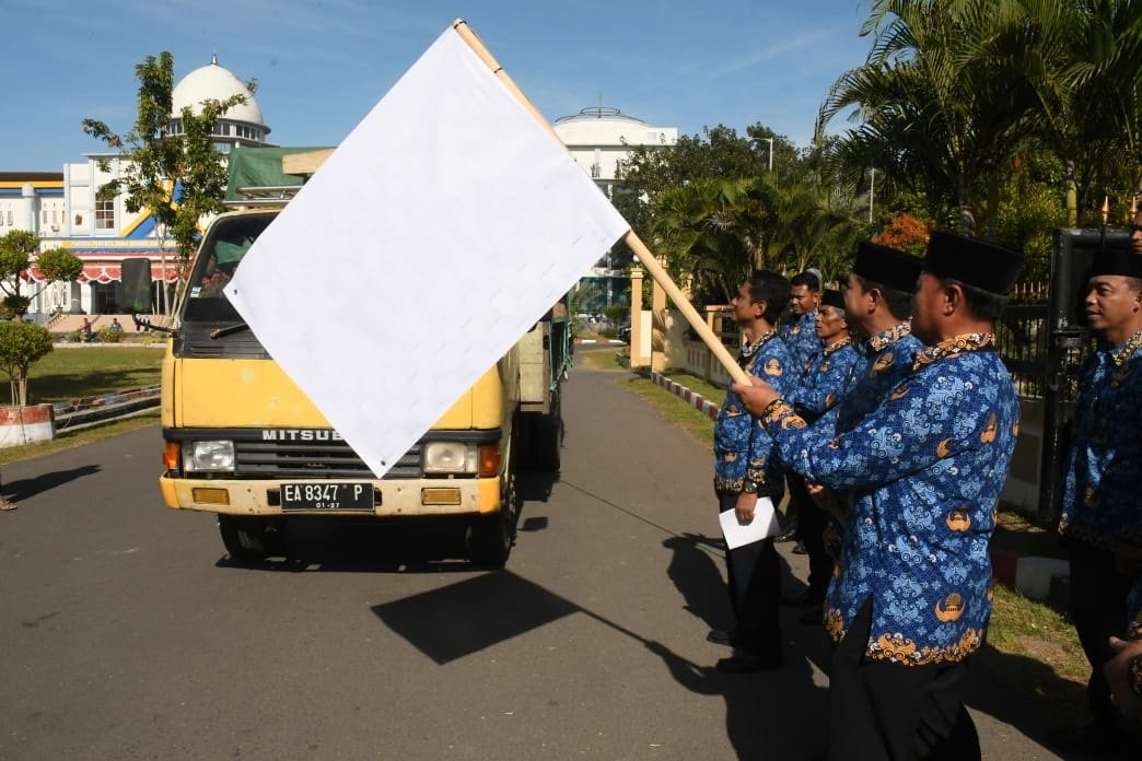 Dompu (Suara NTB) – Bupati Dompu, Bambang Firdaus, SE melepas bantuan pangan untuk disalurkan kepada 22.773 kepala keluarga (KK) se Kabupaten Dompu. Namun dihari pertama penyaluran diarahkan untuk warga di Kecamatan Hu’u dan setiap KK mendapatkan 20 kg beras.