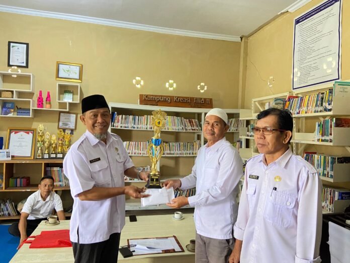 “Bapak sangat layak jadi juara! Kalau saya jadi jurinya, sebelum masuk ruang ini saja perpustakaan Pak Kades sudah saya pastikan juara satu,” ujar Mugni sambil bersalaman dengan Kades Embung Kandong, H. Erman Rusdi.
