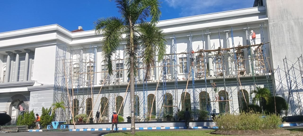 Pekerjaan renovasi ini menggunakan mekanisme penunjukan lelang elektronik, karena ada ketentuan bahwa nilai sampai Rp400 juta bisa mekanisme Penunjukan Langsung (PL). Namun terkait mekanisme ini ranahnya di Bagian PBJ. Dengan anggaran Rp380 juta itu untuk pengecatan gedung bagian tengah, kubah, gedung sayap kiri dan kanan, samping kiri dan kanan, serta bagian tengah (bagian belakang gedung).