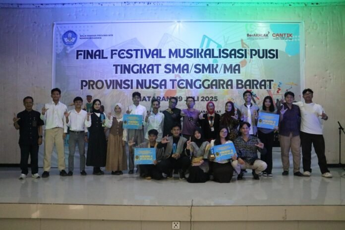 Mataram (Suara NTB) – Festival Musikalisasi Puisi Tingkat SMA/MA/SMK Provinsi NTB mencapai puncaknya. Tahap final diselenggarakan di Balai Penjaminan Mutu Pendidikan (BPMP) Provinsi NTB pada Sabtu, 19 Juli 2025. Sebanyak sepuluh tim dari sepuluh sekolah yang dinyatakan menjadi finalis sesuai hasil penilaian dewan penilai tahap penyisihan pada tanggal 7 Juli 2025.