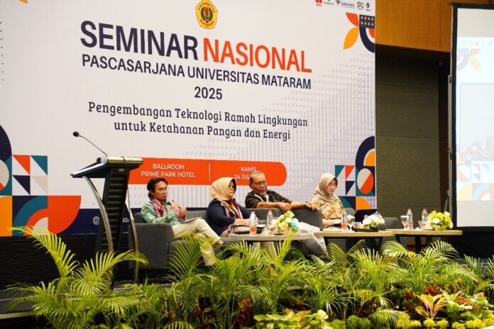 Mataram (suarantb.com) – Pascasarjana Universitas Mataram (Unram) menyelenggarakan Seminar Nasional bertema “Pengembangan Teknologi Ramah Lingkungan untuk Ketahanan Pangan dan Energi” bertempat di Prime Park Hotel, Mataram, pada Kamis, 24 Juli 2025. Kegiatan ini menjadi wadah diskusi strategis untuk merespons tantangan global dalam sektor pangan dan energi, sekaligus mendorong kolaborasi lintas sektor dalam pengembangan teknologi berkelanjutan.