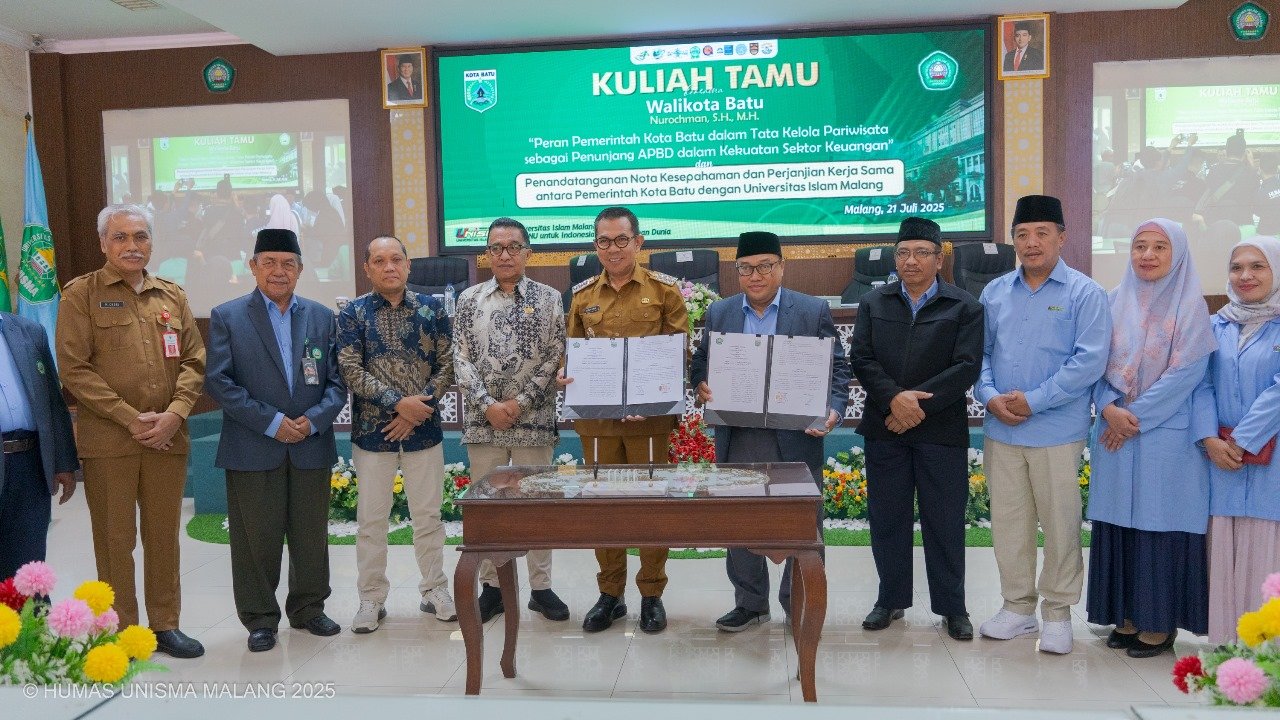 Kesepakatan ini ditandai dengan penandatanganan Nota Kesepahaman (MoU) yang berlangsung di Ruang Seminar KH. Wahab Hasbullah, Gedung Utsman Bin Affan Unisma, pada Senin (21/7/2025). Acara ini dihadiri langsung oleh Wali Kota Batu, H. Nurochman, serta Rektor Unisma, Prof. Drs. H. Junaidi, M.Pd., Ph.D.