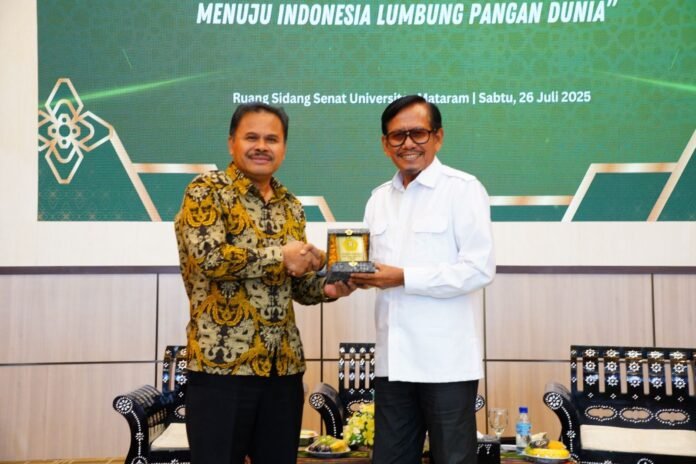 Mataram (Suara NTB) – Universitas Mataram (Unram) kembali menegaskan peran strategisnya dalam mendukung ketahanan pangan nasional melalui kuliah umum bertema “Mewujudkan Swasembada Pangan Berkelanjutan Menuju Indonesia Lumbung Pangan Dunia”.