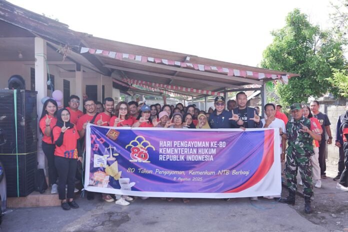 Mataram (suarantb.com)– Dalam rangka memperingati Hari Pengayoman ke-80 dan Hari Kemerdekaan Indonesia ke-80, Kanwil Kemenkum NTB gelar kegiatan Bakti Sosial bertema “80 Tahun Pengayoman, Kemenkum NTB Berbagi” pada Jumat (08/08) di Kelurahan Mayura, Kota Mataram.