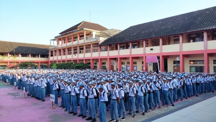 Mataram (Suara NTB) – SMKN 3 Mataram menggelar apel bendera di Lapangan SMKN 3 Mataram, pada Senin, 11 Agustus 2025. Apel kali ini cukup istimewa dengan kehadiran perwakilan dari Kapolsek Selaparang, Iptu Adiharta, yang bertindak sebagai pembina apel.