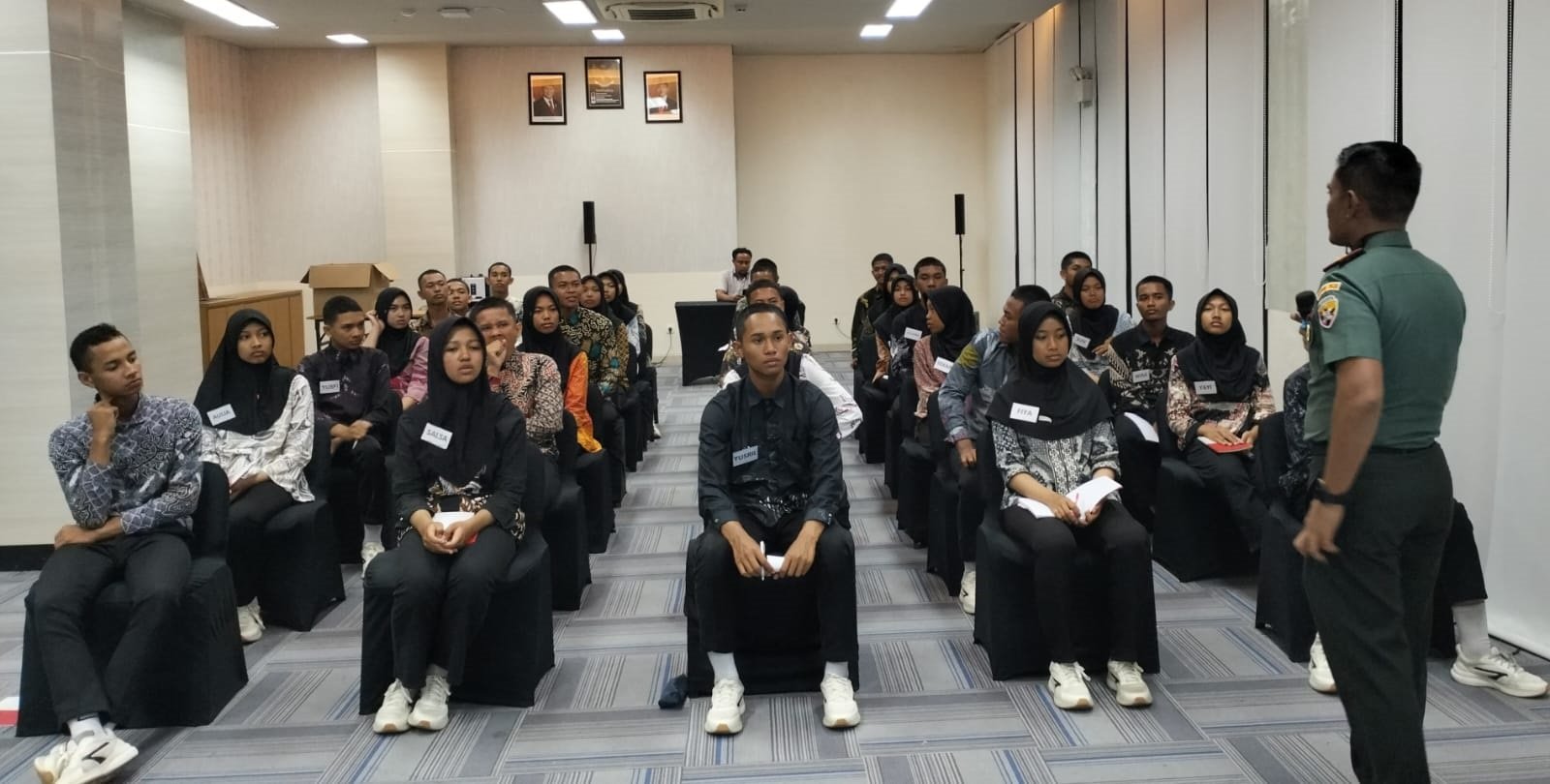 Materi diberikan langsung Dandim 1620/Loteng Letkol Arm Karimmuddin Rangkuti, bertempat di de Balen Soultan Hotel Poltekpar Lombok, tempat anggota Paskibraka Loteng menjalani proses karantina, Senin, 11 Agustus 2025 malam.
