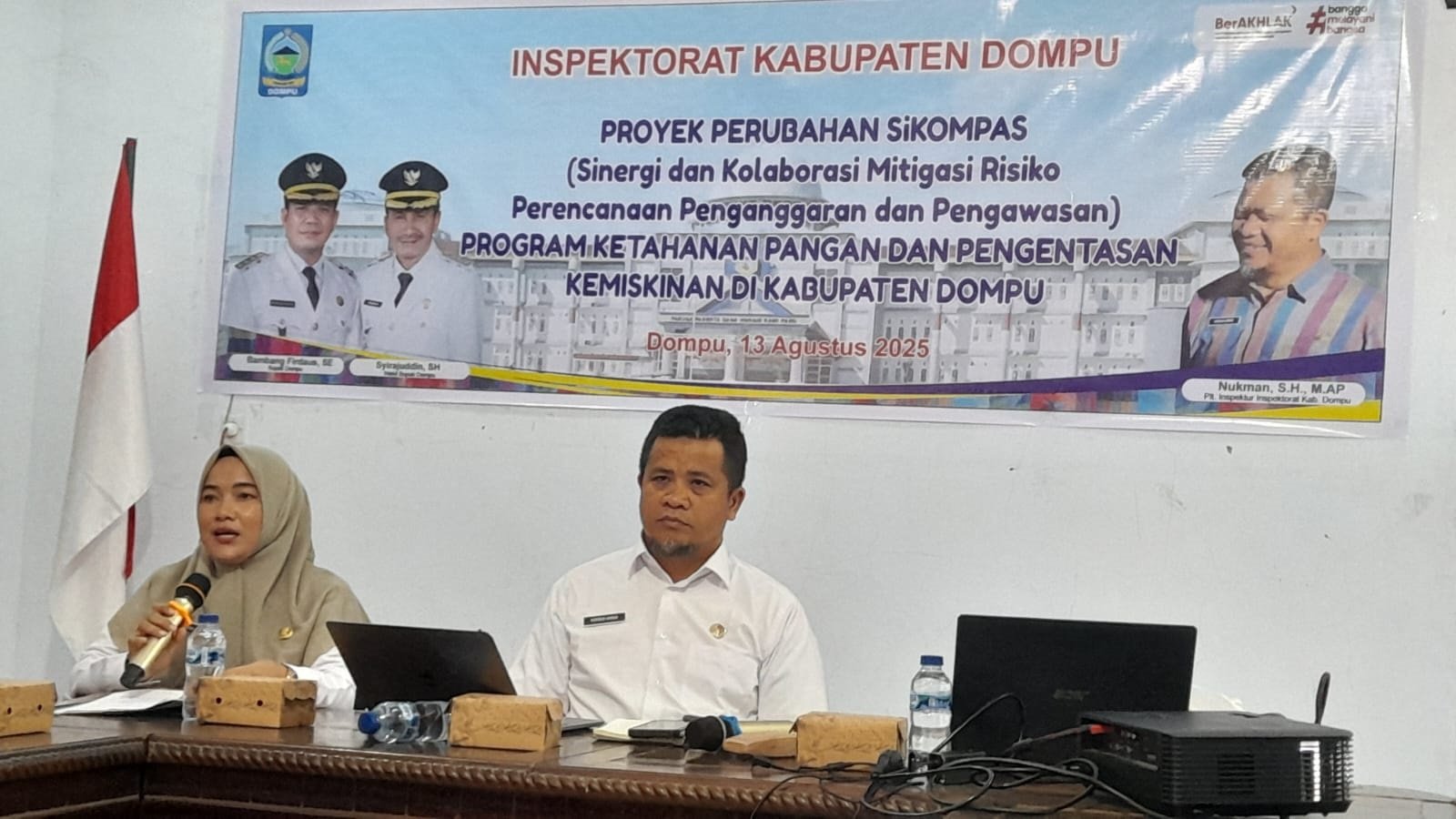 Gagasan ini disampaikan Plt Inspektur Inspektorat Kabupaten Dompu, Nukman, SH., MAP., sebagai Proyek Perubahan SiKOMPAS atau Sinergi dan Kolaborasi Mitigasi Risiko Perencanaan, Penganggaran dan Pengawasan Program Ketahanan Pangan dan Pengentasan Kemiskinan di Kabupaten Dompu yang disampaikan di Aula Inspektorat Kabupaten Dompu, Rabu, 13 Agustus 2025 siang.