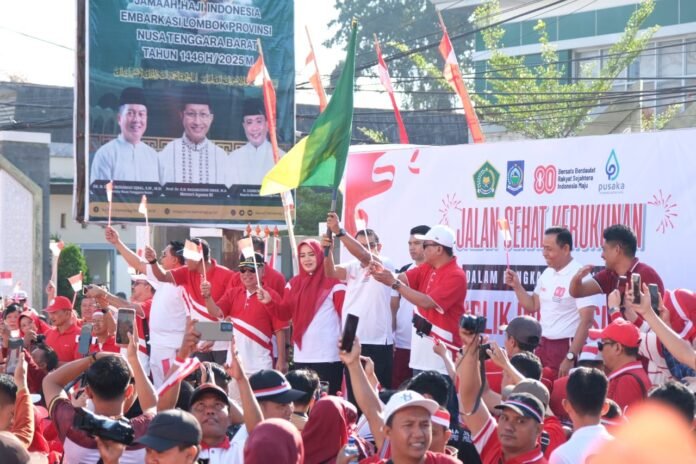 Turut hadir membuka kegiatan jalan santai ini Wakil Gubernur NTB, Indah Dhamayanti Putri dan Kapolda NTB, Hadi Gunawan, Kakanwil Kemenag Agama NTB, Zamroni Aziz beserta seluruh jajaran.