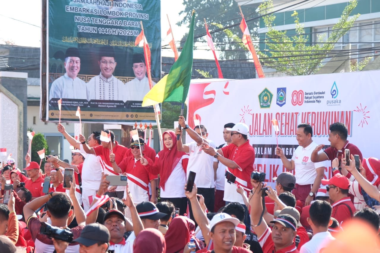 Mataram (suarantb.com) – Kepala Kantor Wilayah Kementerian Hukum Nusa Tenggara Barat (Kakanwil Kemenkum NTB), I Gusti Putu Milawati didampingi Kepala Divisi Pelayanan, Anna Ernita beserta jajaran mengikuti kegiatan Jalan Santai Kerukunan yang digelar oleh Kantor Wilayah Kementerian Agama NTB, Sabtu, 16 Agustus 2025.