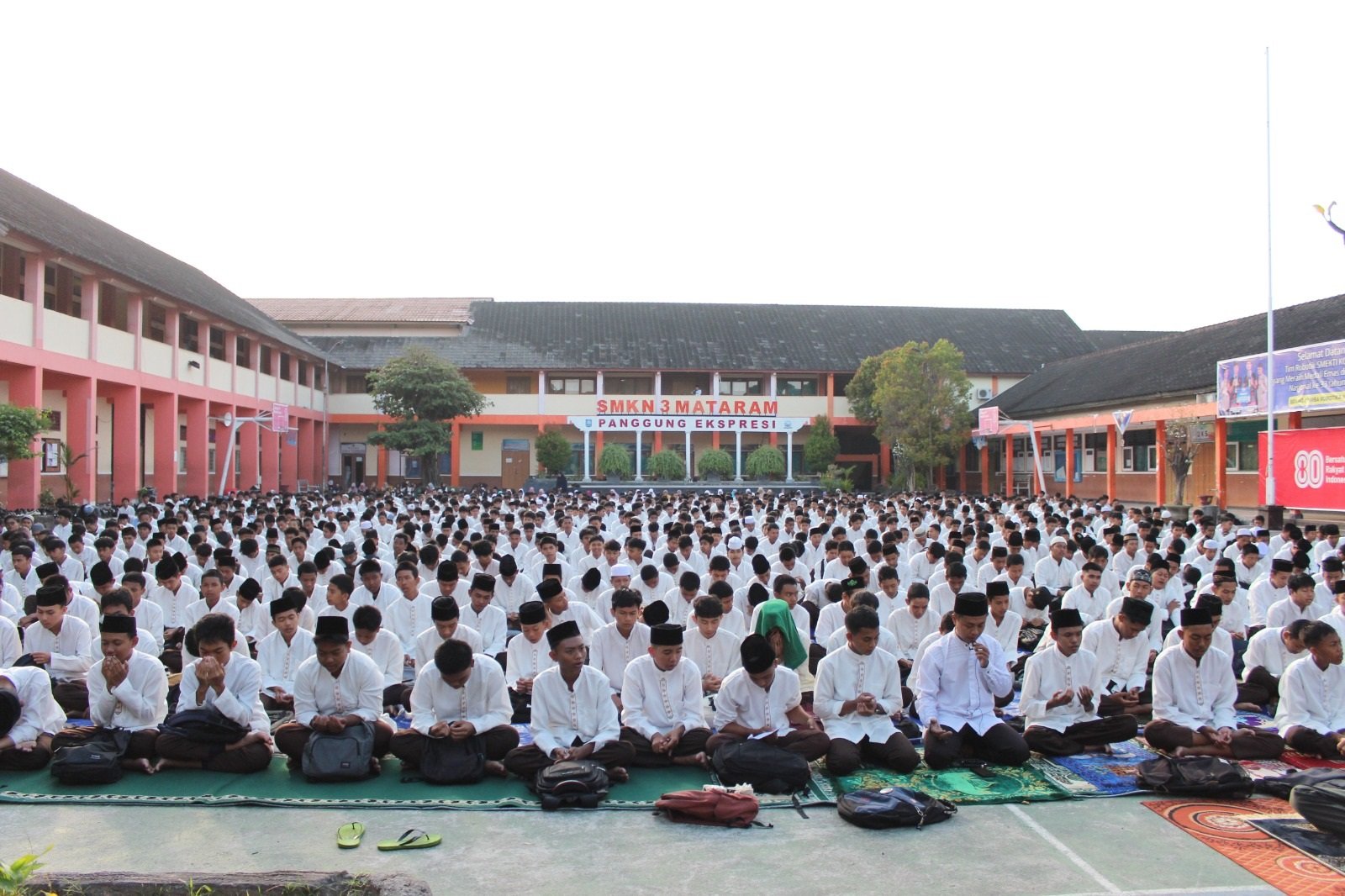 Lapangan SMKN 3 Mataram dipenuhi saf seluruh warga sekolah, mulai dari dewan guru, pegawai dan murid pada Jumat, 22 Agustus 2025. Hal ini tentu menjadi satu pelecut harapan bahwa SMKN 3 Mataram mampu menunjukkan peningkatan dari berbagai sisi. Tidak hanya dalam bidang prestasi akademik maupun non-akademik saja, namun juga dari sisi religius.