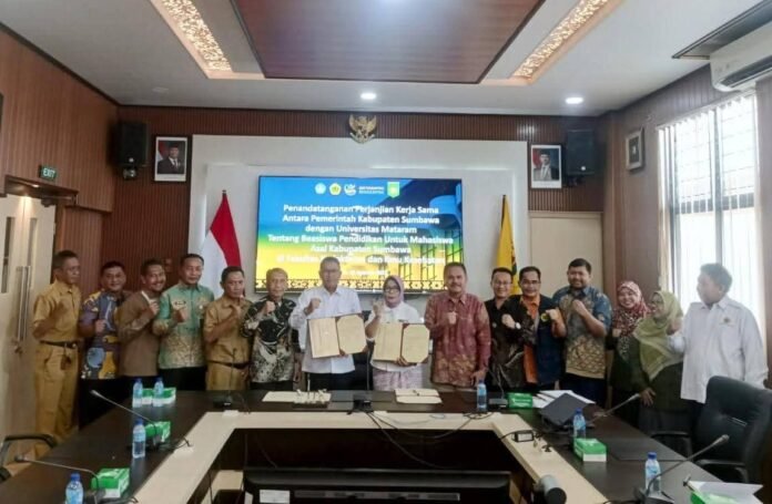 Sumbawa Besar (Suara NTB) – Pemkab Sumbawa dan Universitas Mataram (Unram) secara resmi menandatangani Perjanjian Kerja Sama (PKS) dan Kerangka Acuan Kerja (KAK) untuk program beasiswa kedokteran dan farmasi di Mataram Selasa, 19 Agustus 2025.