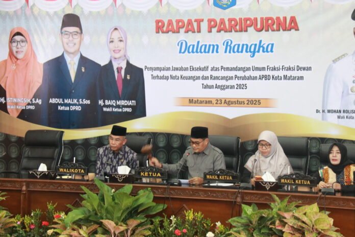 Mataram (Suara NTB) – Pemerintah Kota Mataram melalui Wakil Wali Kota, TGH. Mujiburrahman, menyampaikan jawaban eksekutif atas pemandangan umum fraksi-fraksi DPRD Kota Mataram terhadap Nota Keuangan dan Rancangan Perubahan Anggaran Pendapatan dan Belanja Daerah (APBD) Tahun Anggaran 2025 dalam rapat Paripurna, Sabtu, 23 Agustus 2025.