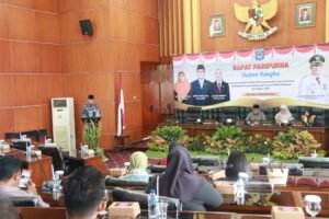 Rapat paripurna dipimpin Ketua DPRD Kota Mataram, Abdul Malik, S.Sos., didampingi Wakil Ketua, Hj. Istinigsih, S.Ag., dan Hj. Baiq Mirdiati.