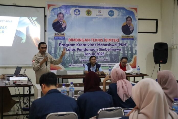 Mataram (Suara NTB) – Universitas Mataram (Unram) menggelar Bimbingan Teknis (Bimtek) Program Kreativitas Mahasiswa (PKM) bagi enam kelompok yang berhasil lolos pendanaan Simbelmawa Tahun 2025 di Guest House Unram, pada Sabtu, 23 Agustus 2025. Terdiri atas dua kelompok PKM Karya Cipta (KC) dan empat kelompok PKM Riset Eksakta (RE), kegiatan ini diikuti oleh total 27 mahasiswa.