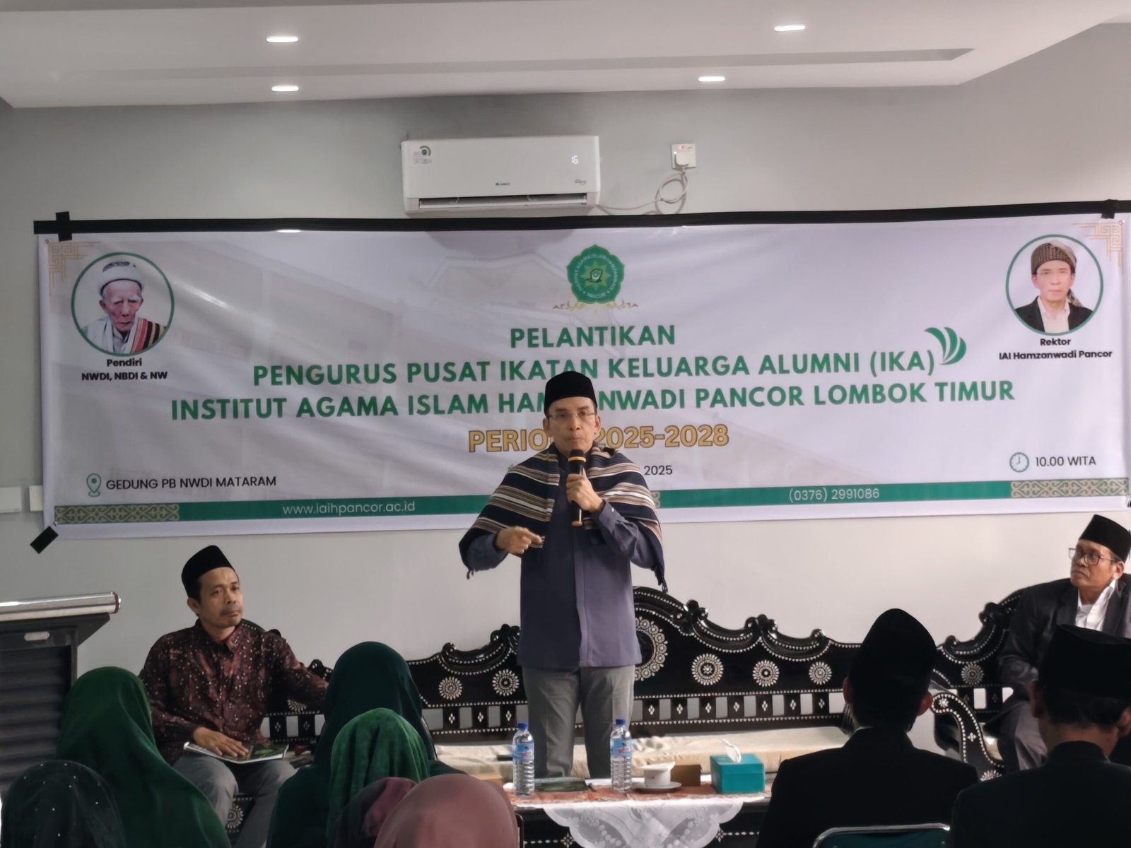 Mataram (Suara NTB) – Rektor Institut Agama Islam Hamzanwadi (IAIH) Pancor, Dr. TGB. H. Muhammad Zainul Majdi, MA, resmi melantik Pengurus Pusat Ikatan Keluarga Alumni (IKA) IAIH Pancor masa bakti 2025–2028. Acara berlangsung di Kantor Pusat Pengurus Besar NWDI, Jalan Langko Nomor 59 Mataram, Rabu (27/8/2025) pukul 10.00 WITA.