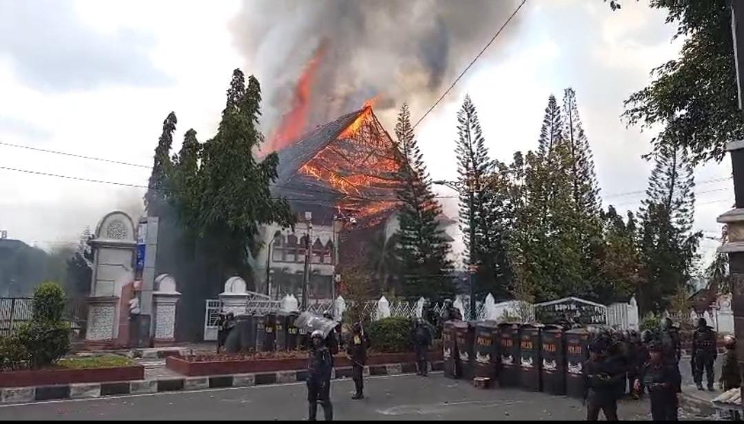 Mataram (suarantb.com) – Gedung DPRD NTB dibakar massa aksi demo dari aliansi mahasiswa dan masyarakat NTB, Sabtu (30/8/2025).