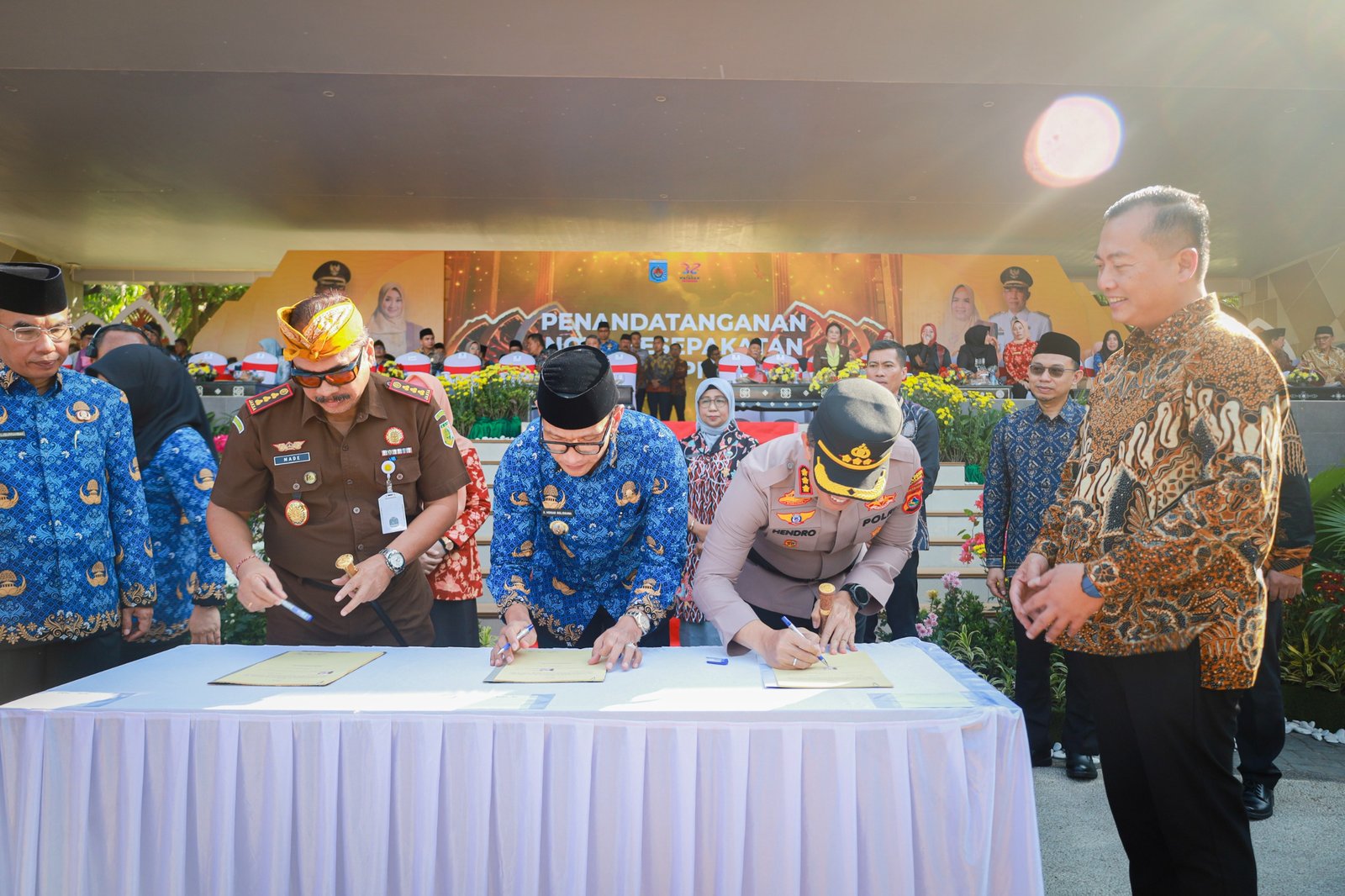 Pantauan Suara NTB, penandatanganan nota kesepahaman digelar pada puncak peringatan hari ulang tahun Kota Mataram ke-32 pada, Minggu, 31 Agustus 2025. Nota Kesepahaman di tanda tangani langsung oleh Wali Kota Mataram Dr. H. Mohan Roliskana, Kepala Kejaksaan Negeri Mataram Dr. Gde Made Pasek Swardhayana, S.H.,M.H. dan Kepala Kepolisian Resort Kota Mataram Kombes Pol. Hendro Purwoko, S.IK.,M.H.,. Penandatanganan MoU juga disaksikan langsung oleh Gubernur NTB Dr. H. Lalu Muhammad Iqbal.