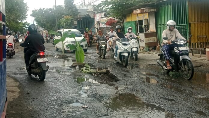 Kubangan Jalan Provinsi di Kediri Ditanami Pohon Pisang