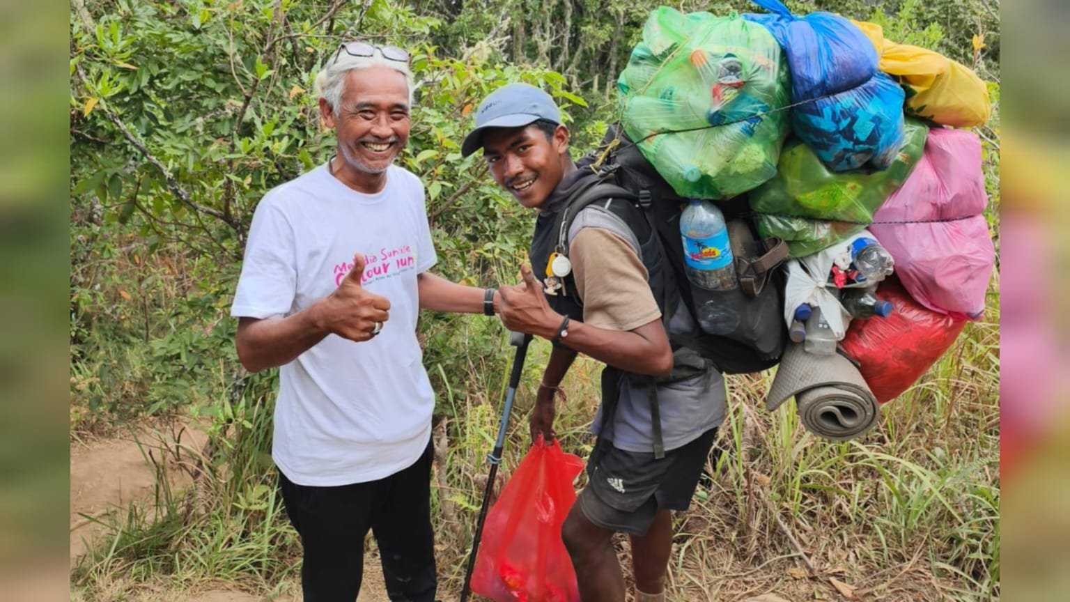 Dalam perjalanan itu, ia juga menjumpai seorang Pemuda yang dipunggungnya penuh dengan sampah plastik. Sampah tersebut ada yang dimasukkan ke dalam tas ransel, adapula yang dikemas dengan plastik kresek besar.