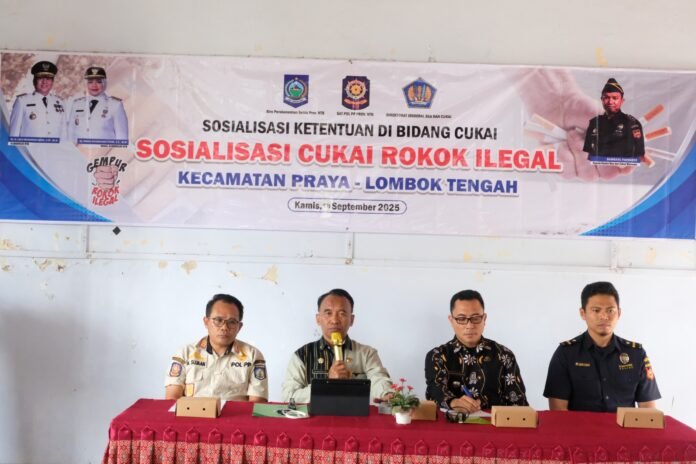 Praya (Suara NTB) – Biro Perekonomian Setda Nusa Tenggara Barat (NTB) menggelar sosialisasi bahaya peredaran rokok ilegal di Kantor Camat Praya, Kabupaten Lombok Tengah, Kamis 18 September 2025. Kegiatan ini diikuti para pemilik kios rokok, pelaku UMKM tembakau, pemerintah desa dan kelurahan, camat, Babinsa, Bhabinkamtibmas, serta unsur penegak perda.