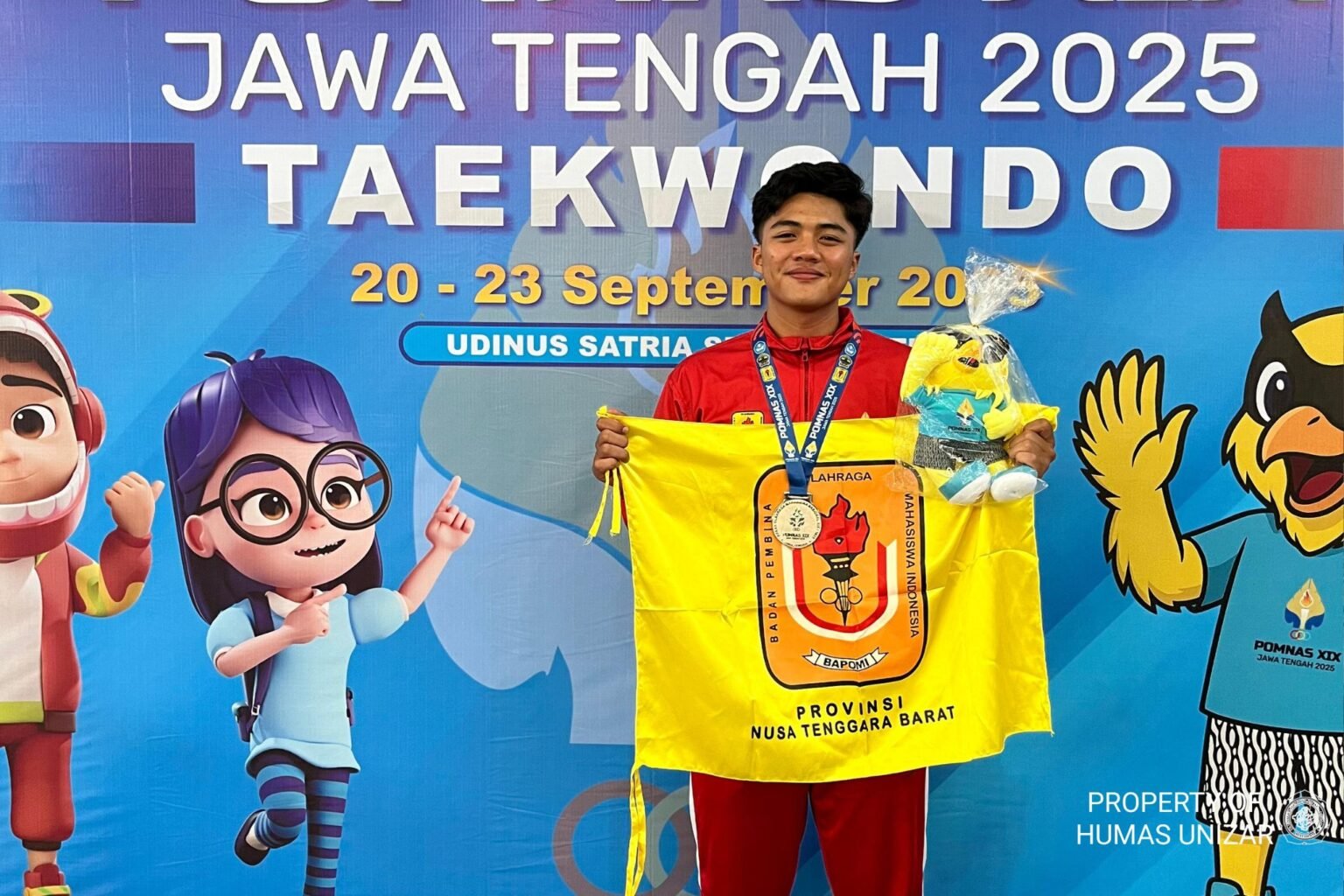 Mataram (Suara NTB) – Prestasi membanggakan kembali ditorehkan oleh mahasiswa Universitas Islam Al-Azhar (Unizar). Maulana Rizky, mahasiswa semester V (Lima) Fakultas Hukum, berhasil meraih medali perak di ajang Pekan Olahraga Mahasiswa Nasional (Pomnas) XIX yang berlangsung di GOR UDINUS Semarang, Jawa Tengah, pada Selasa, 23 september 2025.