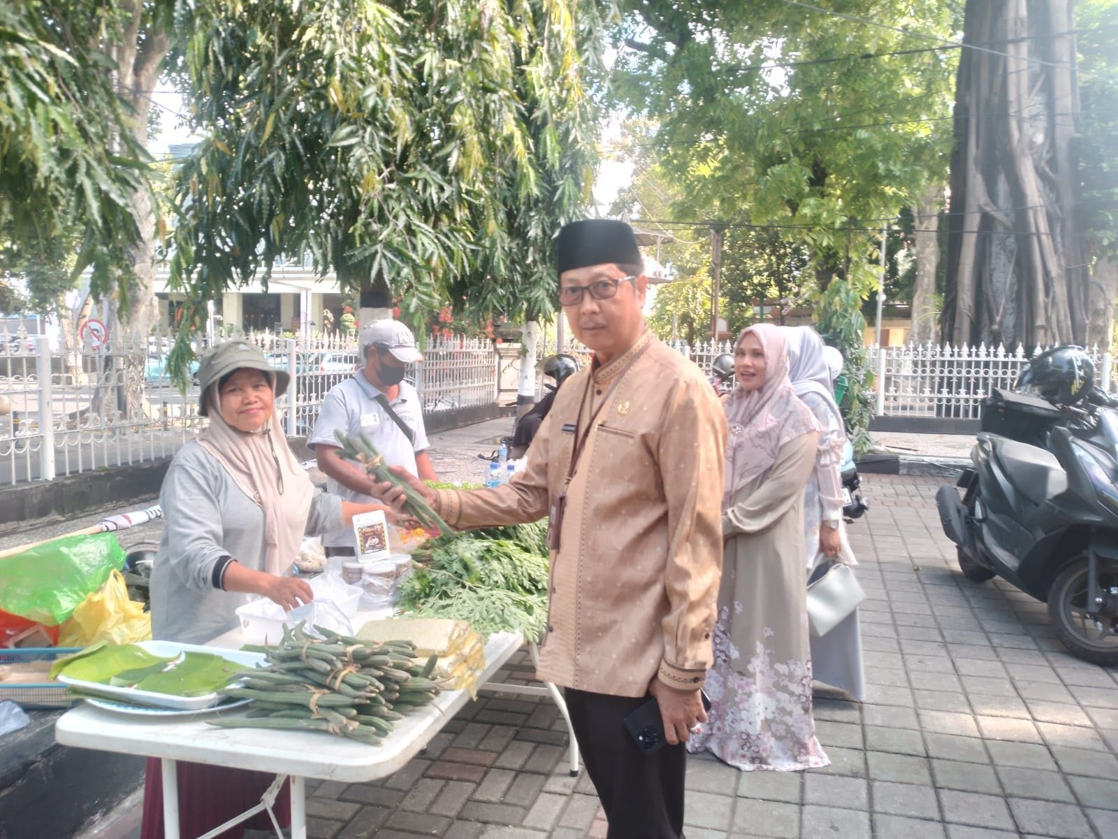 Sekretaris Daerah (Sekda) Kota Mataram, H. Lalu Alwan Basri terlihat langsung berbelanja produk pertanian di pasar tani pada, Jumat 3 Oktober 2025. Berbagai hasil pertanian seperti sayur-sayuran, kerupuk serta olahan hasil pertanian diborong.