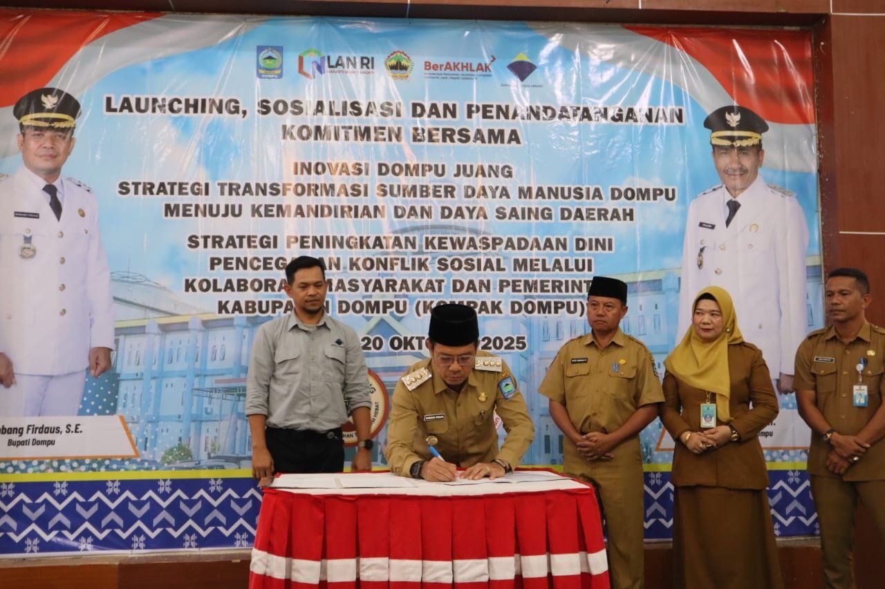 Hal itu disampaikan Bupati Dompu saat melaunching Inovasi Dompu Juang dan Kompak Dompu di aula Pendopo Bupati, Senin (20/10/2025) siang. Kegiatan ini dihadiri banyak tokoh lintas agama, Camat, dan Kepala Desa se Kabupaten Dompu.
