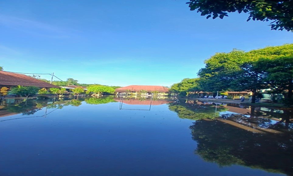 Mataram (Suara NTB) – Hujan lebat yang mengguyur wilayah, Kota Mataram, Selasa, 21 Oktober 2025, siang menyebabkan halaman SMKN 7 Mataram tergenang air. Genangan air yang mencapai ketinggian sekitar 20 hingga 30 sentimeter membuat sebagian area halaman sekolah sulit dilalui oleh para siswa dan guru.