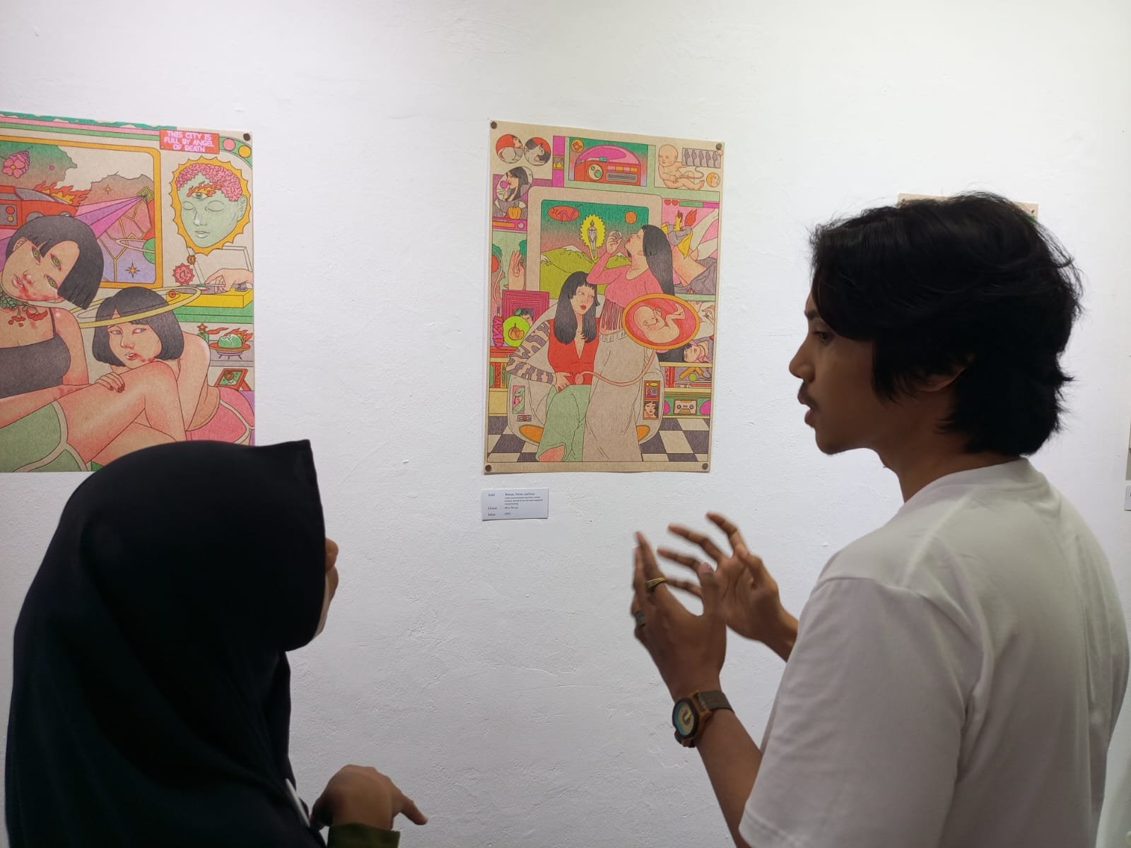 “Pada tahun ini kami berkolaborasi dengan Segara Space pemilik tempat. Jadi kami secara praktik tentu sebagaimana kolaborasi pada umumnya kami menyelenggarakan pameran di sini. Segara Space menyediakan tempat dan membantu penataan dan lain-lain, lalu Whyper sebagai pengkaryanya,” terang Tara.