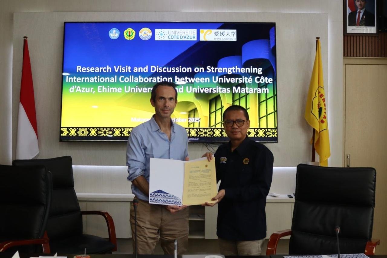 Mataram (suarantb.com) – Universitas Mataram (Unram) bersama University Côte d’Azur (Prancis) dan Ehime University (Jepang) jajaki kerja sama riset pengembangan Gaharu (Agarwood). Dalam pertemuan yang berlangsung di Ruang Sidang Rektor, Rektorat Unram, pada hari Kamis (23/10) ini dihadiri oleh akademisi dari ketiga universitas.