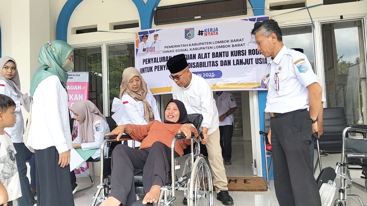 Giri Menang (Suara NTB) – Pemkab Lombok Barat (Lobar) melalui Dinas Sosial (Disos) hadir membantu semua lapisan masyarakat, baik jompo atau lanjut usia (lansia) dan penyandang disabilitas. Disos memberikan bantuan berupa kursi roda untuk mempermudah aksesibilitas warga.