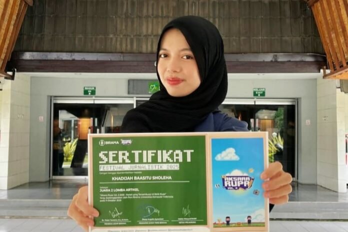 PRESTASI membanggakan kembali diraih oleh mahasiswi Fakultas Hukum, Ilmu Sosial, dan Ilmu Politik (FHISIP) Universitas Mataram (Unram), Khadijah Baasitu Sholeha. Mahasiswi Program Studi Ilmu Komunikasi ini berhasil meraih Juara 2 dalam Lomba Artikel Jurnalistik Nasional yang diselenggarakan oleh Universitas Komputer Indonesia (Unikom) Bandung secara daring pada 29 Oktober 2025.