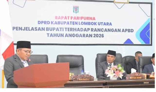 Tanjung (Suara NTB) – Rancangan APBD tahun anggaran 2026 telah disampaikan Bupati Lombok Utara, Dr. H. Najmul Akhyar, SH., MH., dalam rapat paripurna DPRD Kabupaten Lombok Utara, Senin (3/11). Terdapat penurunan dana transfer dari pusat ke daerah sebesar Rp 206,75 miliar lebih.