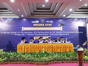Mataram (Suara NTB) – Sekolah Tinggi Pariwisata (STP) Mataram menggelar wisuda ke-XXVI, di Rinjani Ballroom, Lombok Vaganza Hotel, Mataram, Selasa, 25 November 2025. STP Mataram berkomitmen melahirkan lulusan yang kompeten, kredibel, dan siap mengisi dunia industri pariwisata hingga menciptakan lapangan kerja.