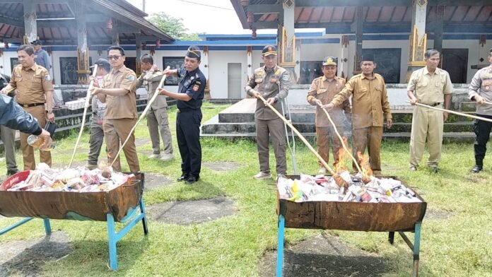 Giri Menang (suarantb.com) – Peredaran rokok Ilegal di Lombok Barat termasuk terbesar atau tertinggi di NTB. Hal ini dampak dari gencarnya upaya pemberantasan rokok ilegal yang dilakukan Pemkab setempat. Pada Selasa (25/11/2025), Pemerintah Daerah (Pemda) melalui Satuan Polisi Pamong Praja (Satpol PP) Lombok Barat dan Bea Cukai Mataram melaksanakan kegiatan pemusnahan perdana terhadap barang kena cukai ilegal, yang digelar di Gedung Budaya Narmada.