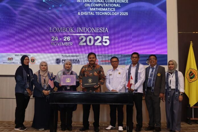 Mataram (Suara NTB) – Dalam rangka meningkatkan kualitas kolaborasi internasional di bidang riset dan pengembangan akademik, Universitas Mataram (Unram) menyelenggarakan International Conference on Computational Mathematics & Digital Technology 2025 (ICOMDT), sebuah konferensi hasil kerja sama dengan Universiti Malaysia Terengganu (UMT). Kegiatan ini bertempat di Ruang Sidang Senat Unram, pada 24–25 November 2025.