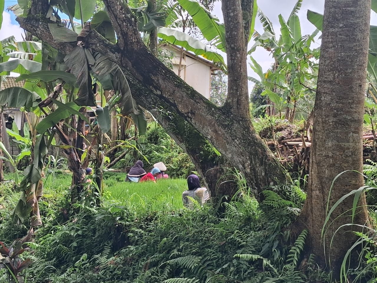 Perempuan, pria, remaja, hingga paruh baya dengan semangatnya bekerja di lahan becek saat musim tanam. Panas-panasan memasuki musim panen. Hal itu bukan masalah, kata Jatna. Daripada hanya ngarit rumput, walau ternak kenyang, tapi tidak bisa menghasilkan cuan, secara langsung.