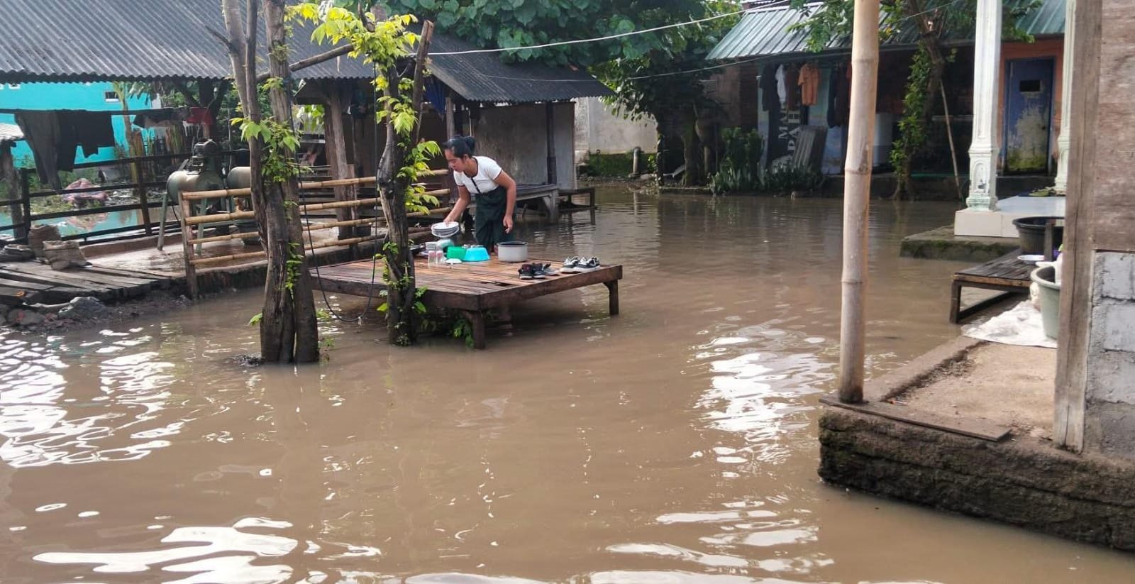 “Debit sungai naik karena kiriman air dari timur. Sungai meluap dan menggenangi rumah warga,” jelasnya.
