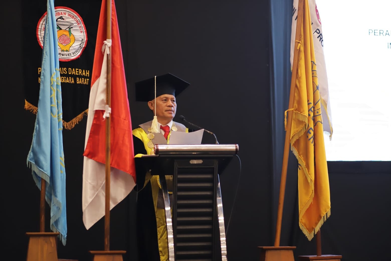 Turut hadir dalam acara wisuda ini, Kepala LLDIKTI VIII, Dr. I Gusti Lanang Bagus Eratodi, M.Eng, Gubernur NTB yang diwakili Kepala Dinkes NTB, Lalu Hamzi Fikri.