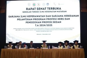 Mataram (Suara NTB) – Sekolah Tinggi Ilmu Kesehatan (Stikes) Mataram menggelar wisuda S1 Keperawatan yang ke-XXIII dan S1 Kebidanan yang ke-III, di Ballroom Rinjani, Hotel Lombok Raya, pada Rabu, 3 Desember 2025. Selain mewisuda, Stikes Mataram juga mengadakan pelantikan profesi Ners ke-XIX dan pendidikan profesi bidan yang pertama.
