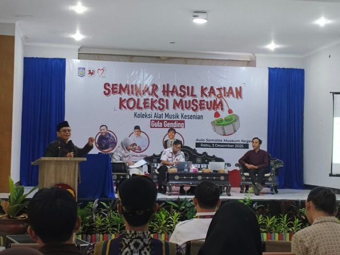 Mataram (Suara NTB) – Museum Negeri NTB menggelar Seminar Hasil Kajian Koleksi Museum pada Rabu (3/12/2025) bertempat di Aula Samalas, Museum Negeri NTB, Rabu, 3 Desember 2025. Seminar ini menghadirkan tiga narasumber di antaranya, Bunyamin, S.S., M.Hum., dari Museum Negeri NTB, Prof. Dr. H. Jamaluddin, M.Ag., dari Universitas Islam Negeri (UIN) Mataram dan Gde Agus Mega Saputra, S.Sn., M.Sn., dari Universitas Nahdlatul Ulama (UNU NTB). Seminar ini diikuti ahli budaya, mahasiswa dan pemerhati seni.