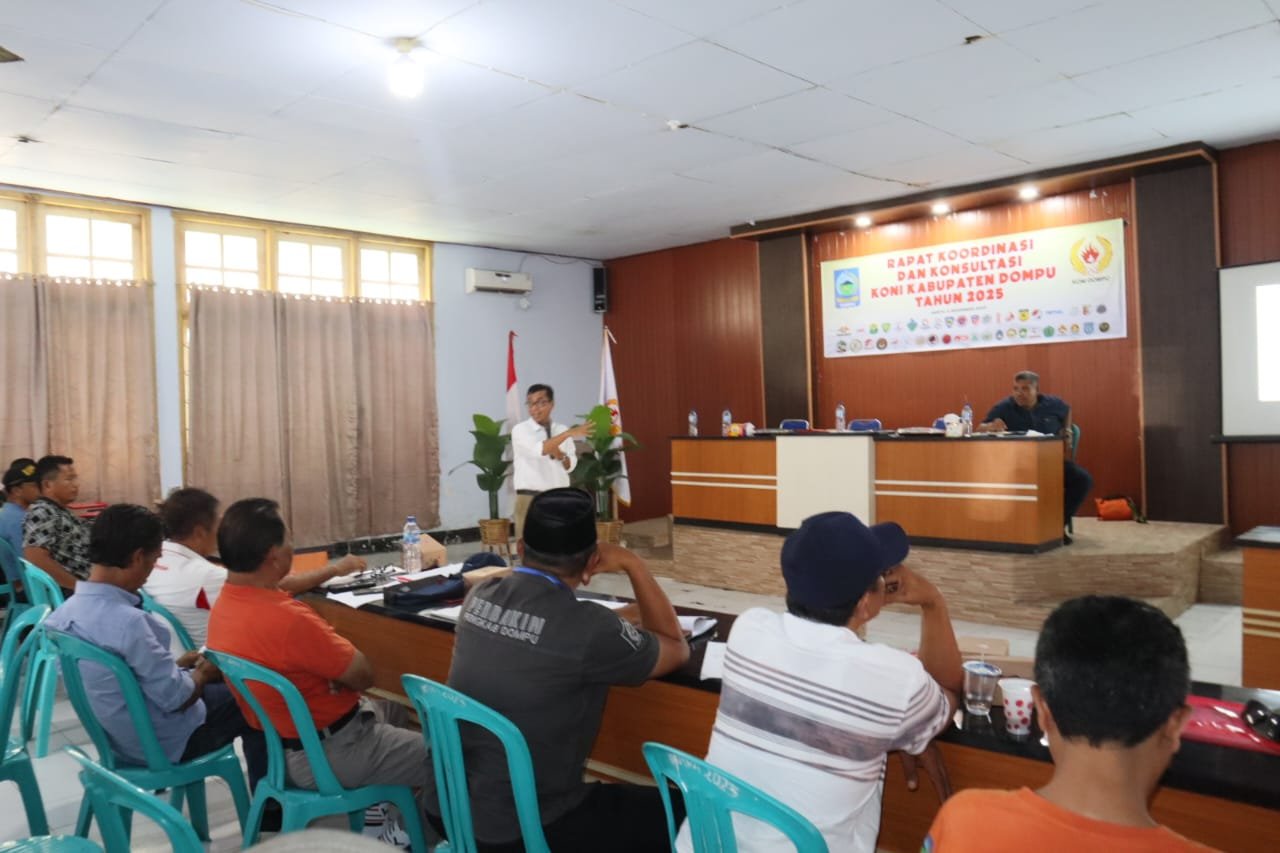 Pengurus Cabang Olahraga (Cabor) anggota KONI Dompu pun dilibatkan membahas kebutuhan atlit dan kontingen, sehingga bisa memaksimalkan anggaran dalam mencapai prestasi. “Ayo kita bahas bersama dalam forum ini. Hasilnya kita sepakati untuk menjadi pegangan bagi kita,” kata Asrullah, ST., Ketua Umum KONI Kabupaten Dompu pada rapat Koordinasi dan Konsultasi yang digelar di aula Dinas Dikpora Kabupaten Dompu, Sabtu , 6 Desember 2025.pagi.