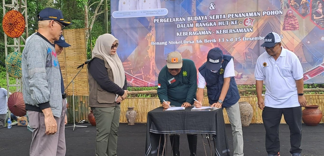 Praya (Suara NTB) – Dinas Lingkungan Hidup dan Kehutanan (DLHK) NTB memulai upaya reforestasi (penghutanan kembali) kawasan hutan di NTB yang rusak dengan mengandeng Universitas Mataram (Unram) dan mitranya PT. Agro Eco Veda, sebuah perusahaan asal Rusia. Kerja sama tripartit tersebut ditandai dengan penandatanganan kesepahaman bersama di sela-sela acara Kemah Budaya NTB di kawasan wisata Benang Stokel, Desa Aik Berik, Kecamatan Batukliang Utara, Lombok Tengah (Loteng), disaksikan langsung Wakil Gubernur NTB (Wagub) Hj. Indah Damayanti Putri, S.E., Minggu (14/12/2025).